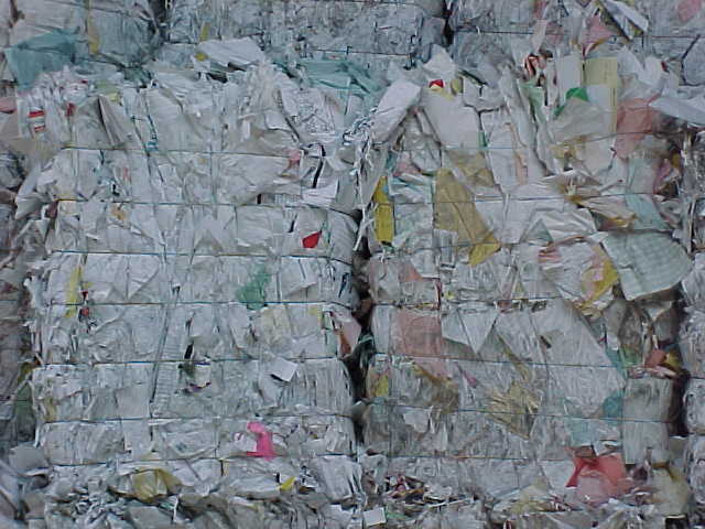 Consists of baled paper, as typically generated by offices, primarily containing white and colored groundwood-free paper which is free of unbleached fiber.
